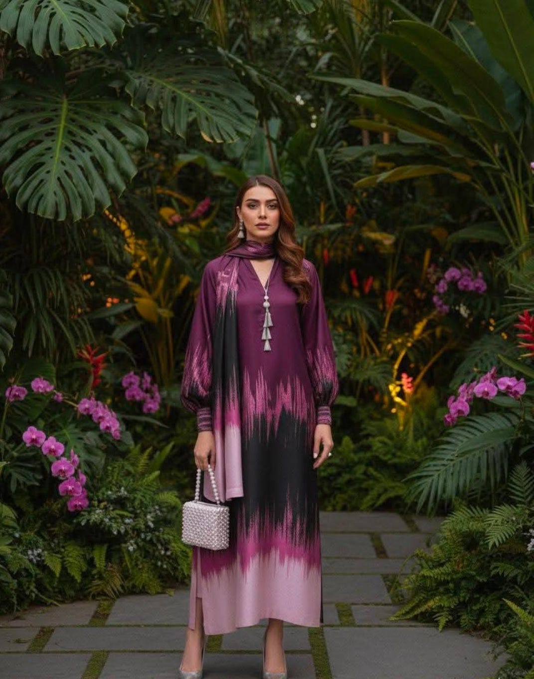 ๐๐1.75 YDS MULTISHADED DIGITALย PRINTED SILKY TROUSER