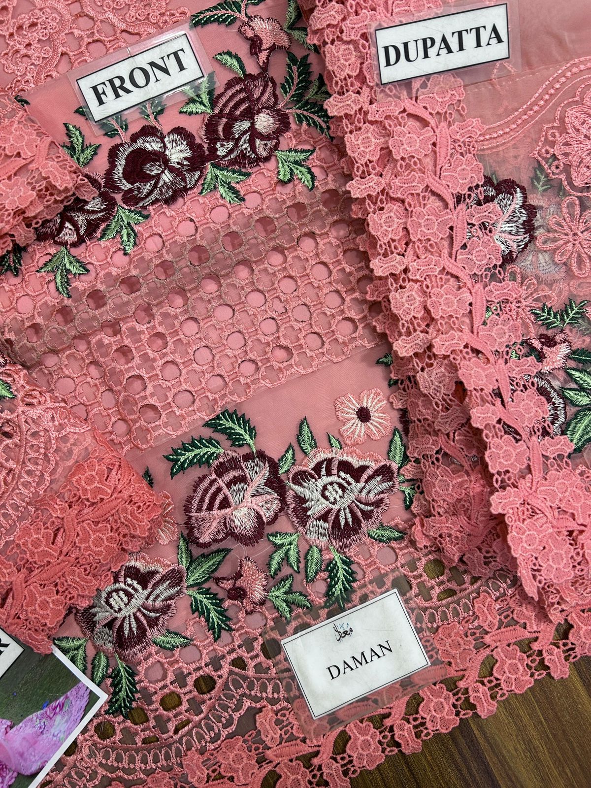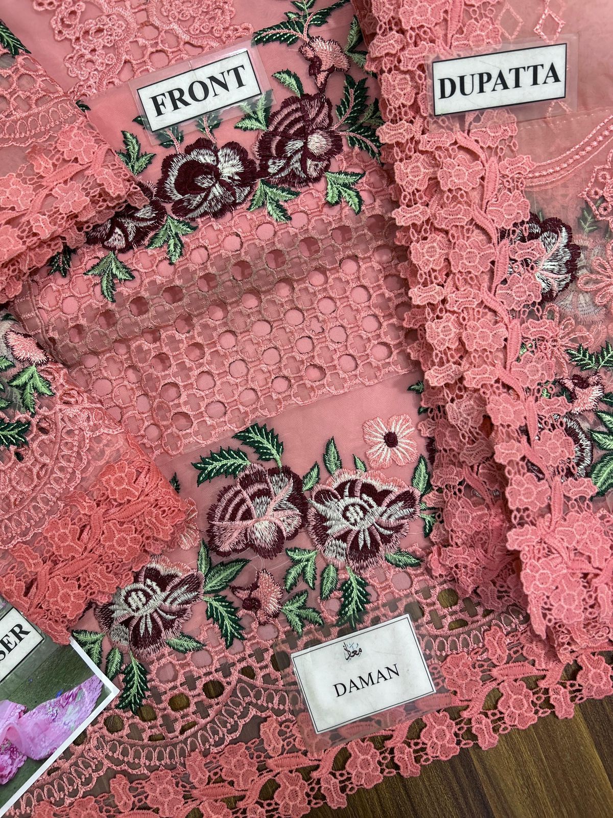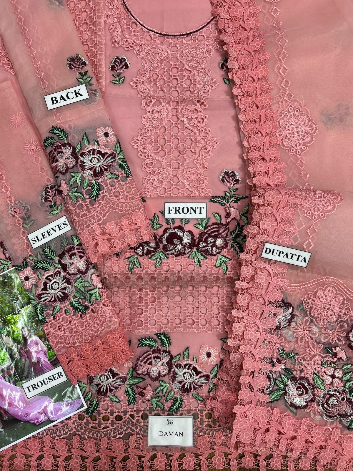 Back fully embroidered with daman laces attached