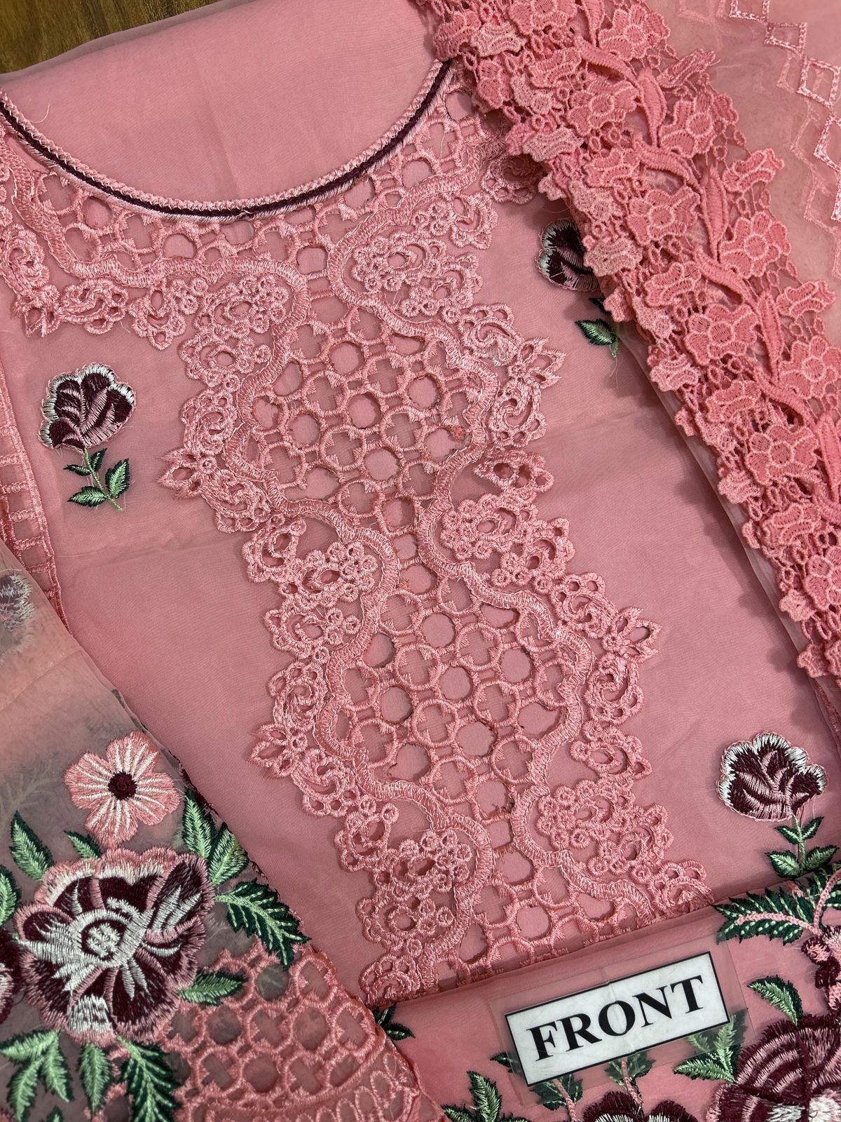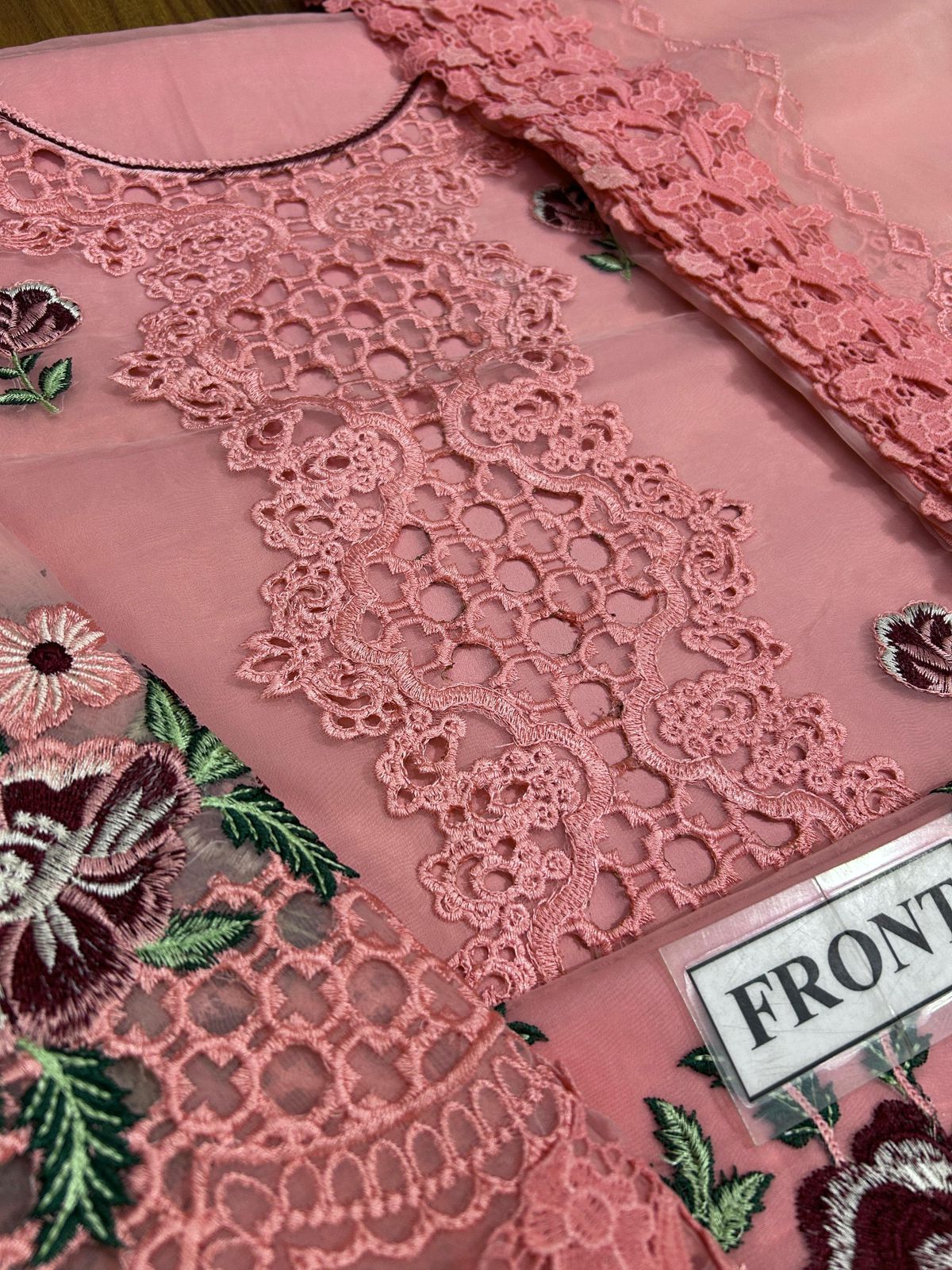 Front fully heavy alternate embroidered with heavy thread work and lazer cutwork with laces attached