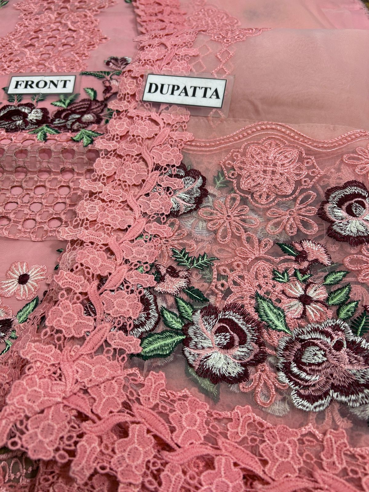Dupatta on ORGANZA ready to wear Fully Embroidered With 4 side embroidered border With laces attached