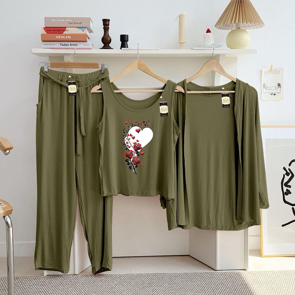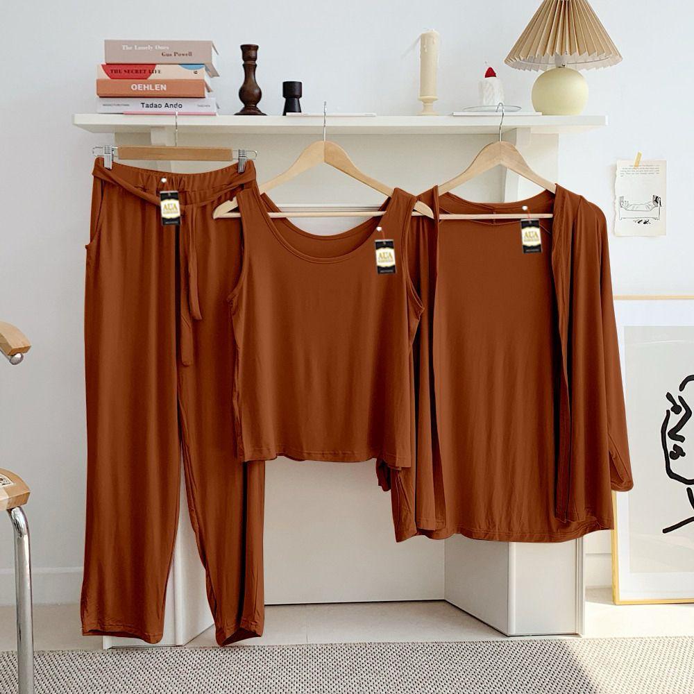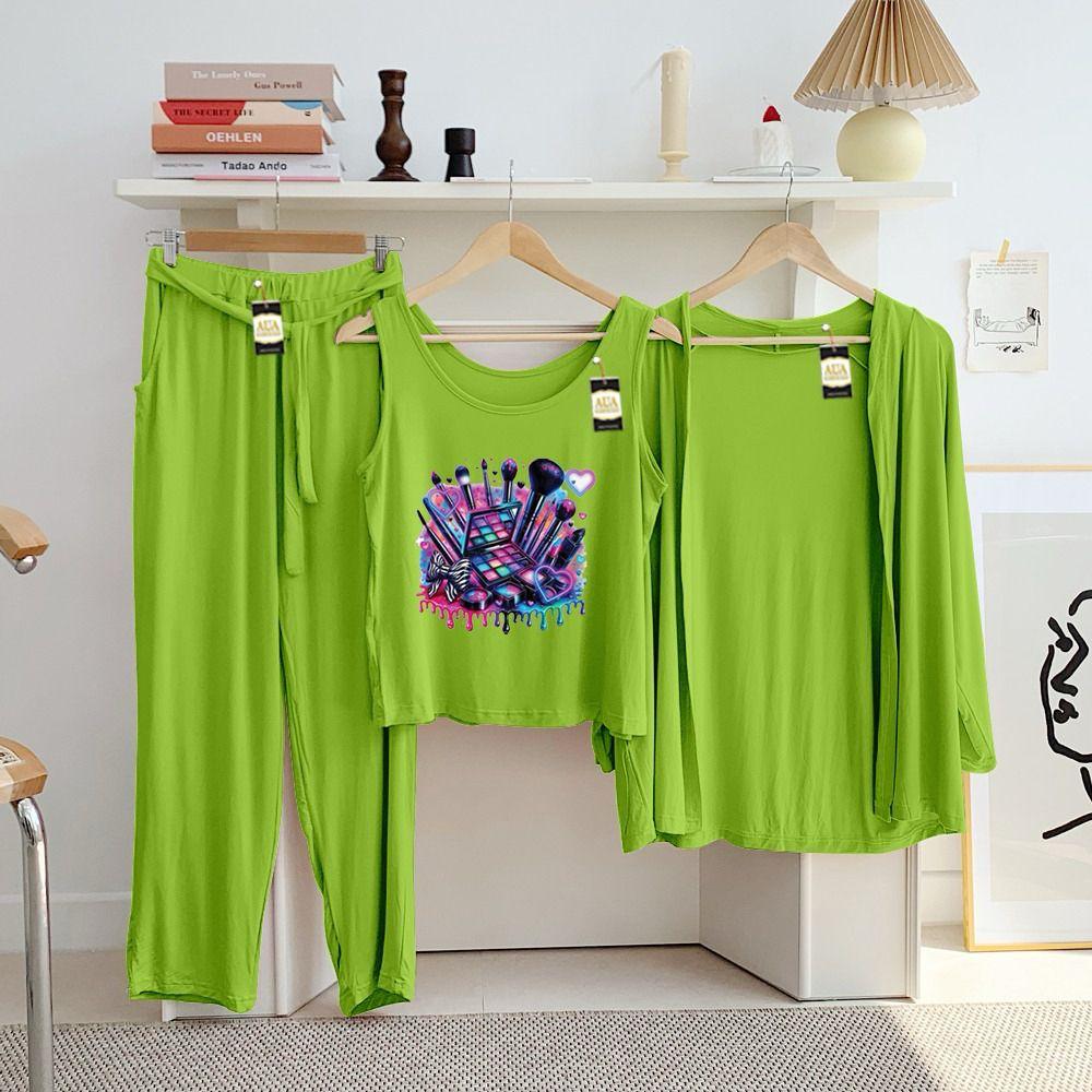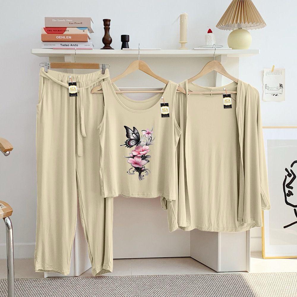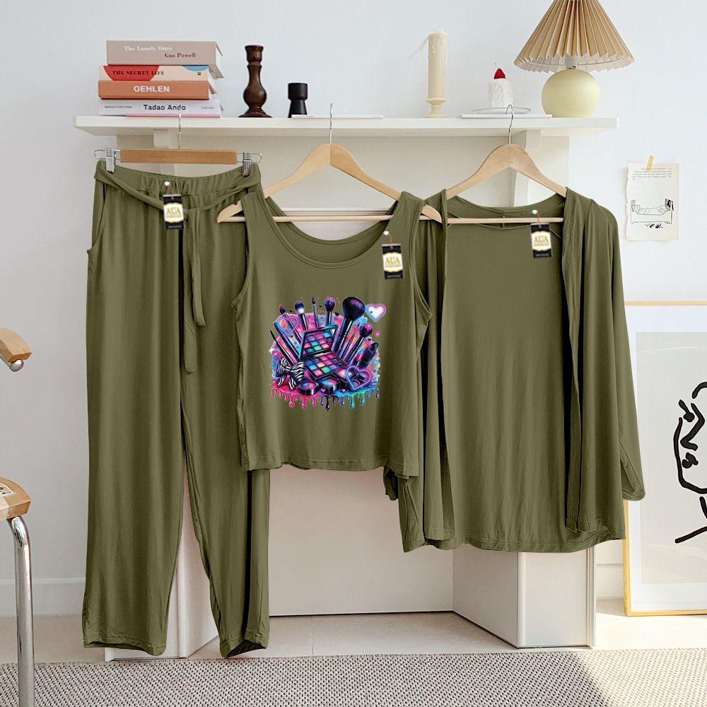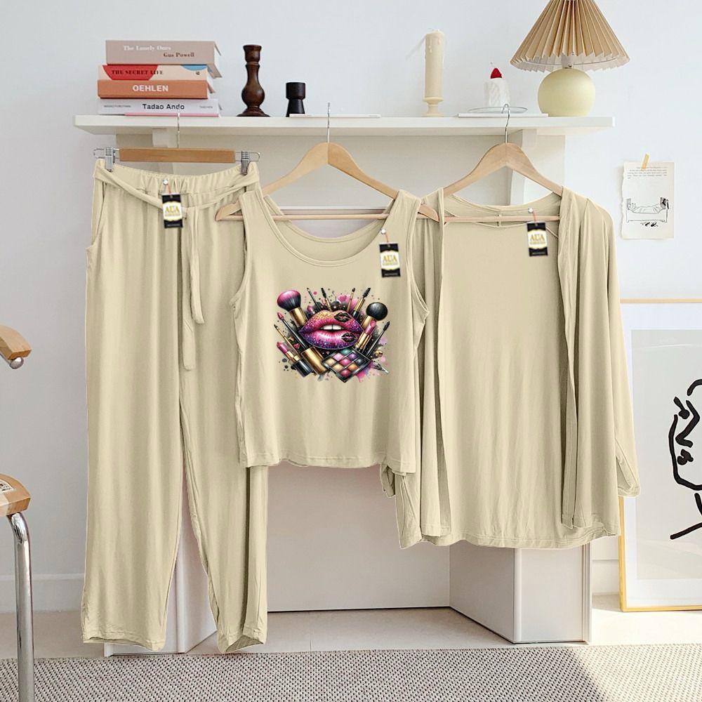 Complete 3-Piece Set: This versatile ensemble includes a sleeveless scoop-neck tank, a matching open-front cardigan for light layering, and full-length lounge pants.